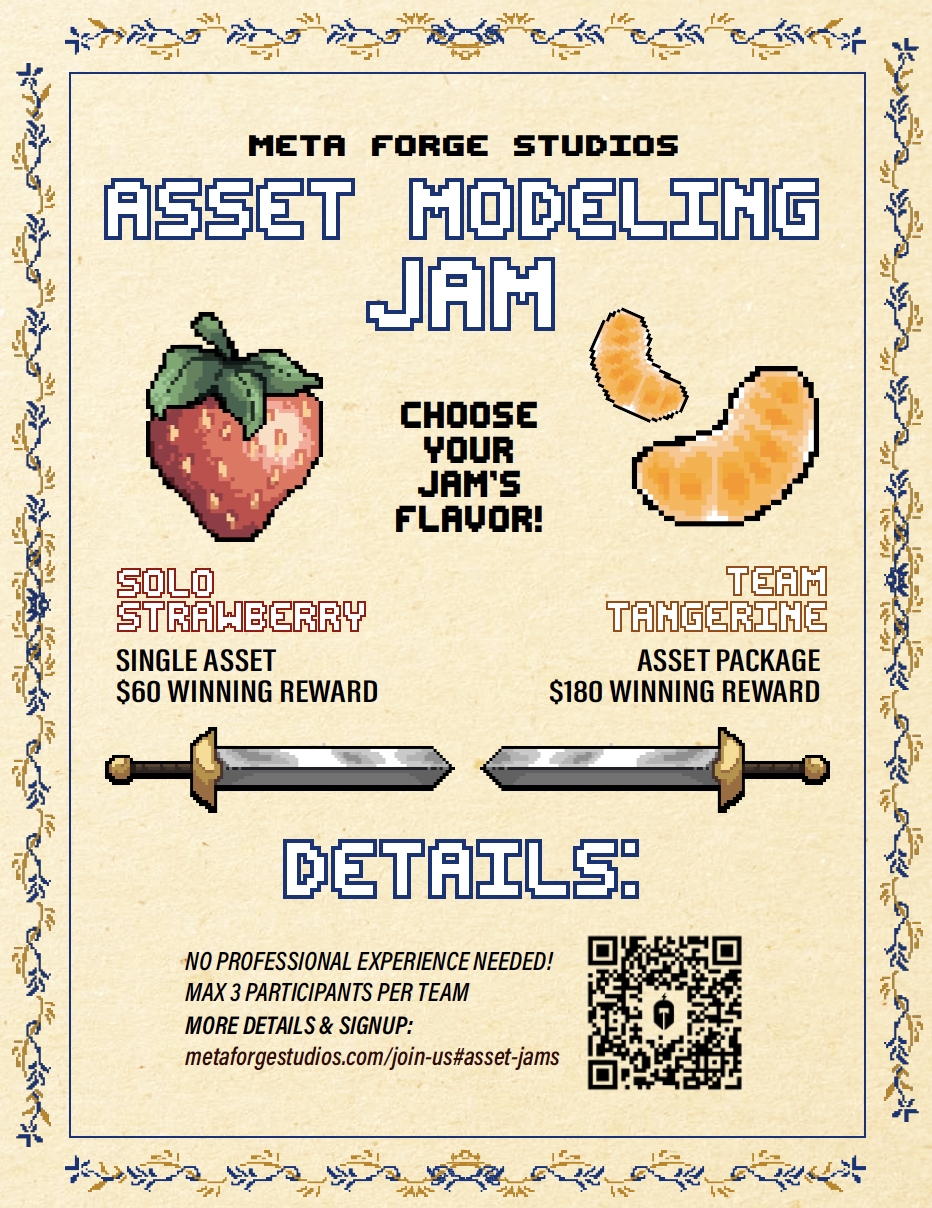 Winning Assets and Game Jams will be posted in our social media as well as reviewed in our Youtube videos. the creator of the assets owns the assets, not the studio.